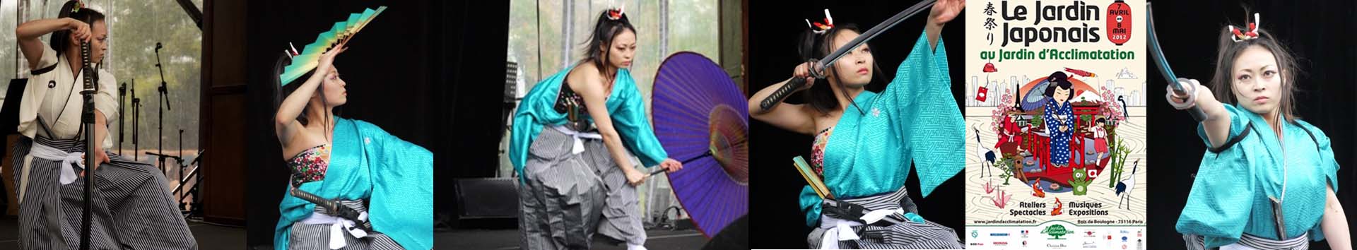 L'artiste Sora Titose se produit au jardin d'acclimatation à Paris pendant l'évènement "le jardin japonais". Une performance de maniement du sabre, de danse et de chant traditionnel accueillie par des spectateurs français enchantés.
